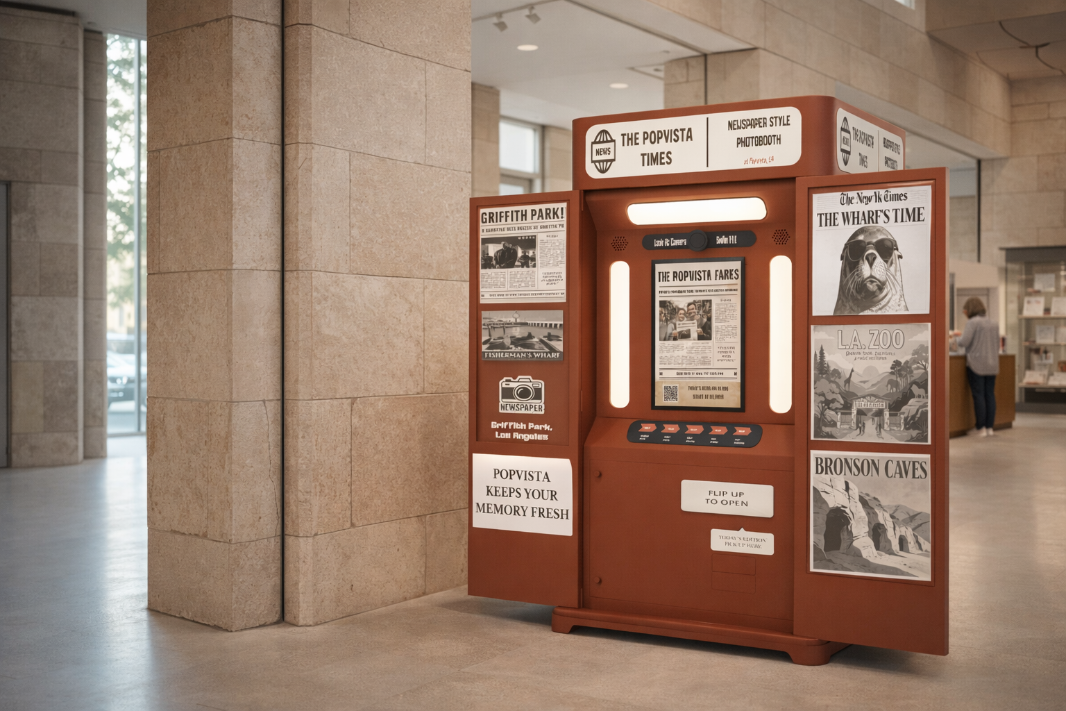 At the end of each experience, PopVista transforms a fleeting moment into a newspaper-style print. What was once instant becomes tangible — a story framed in ink and paper, held in hand, and remembered long after the visit ends.